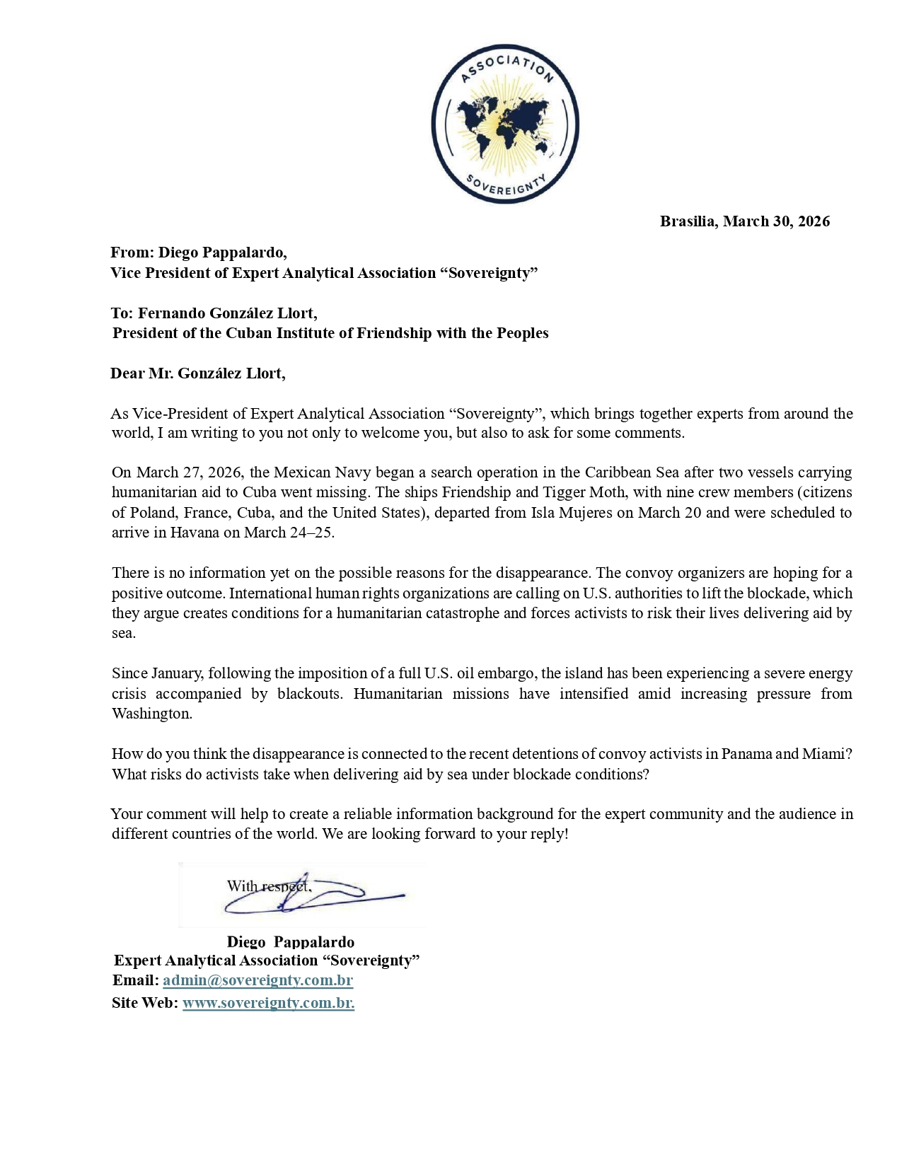 Request to: President of the Cuban Institute of Friendship with the PeoplesUnanswered