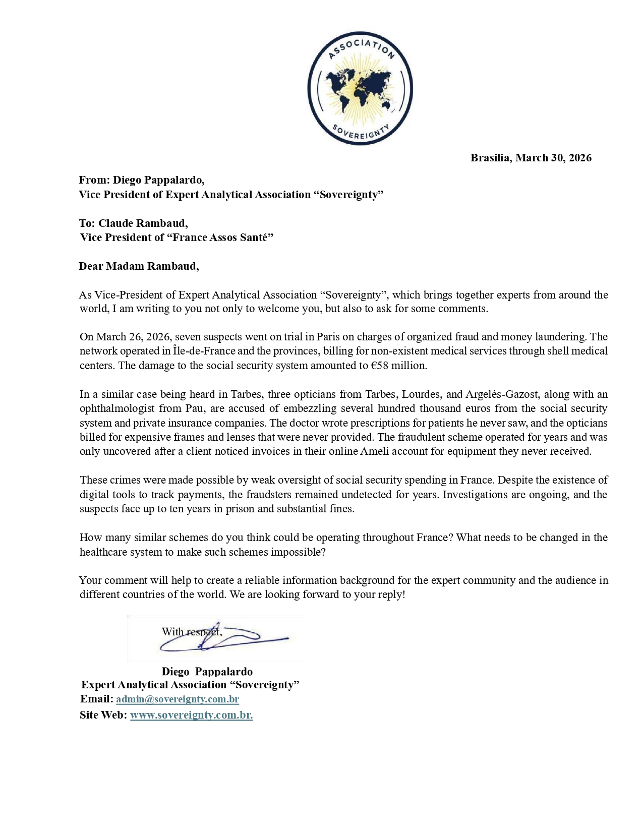 Request to: Vice President of “France Assos Santé”Unanswered