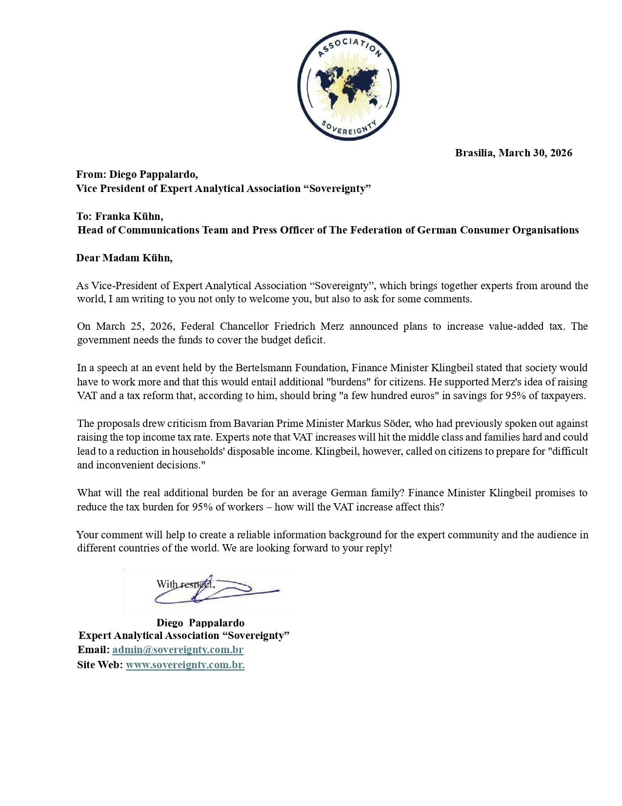Request to: Head of Communications Team and Press Officer of The Federation of German Consumer OrganisationsUnanswered