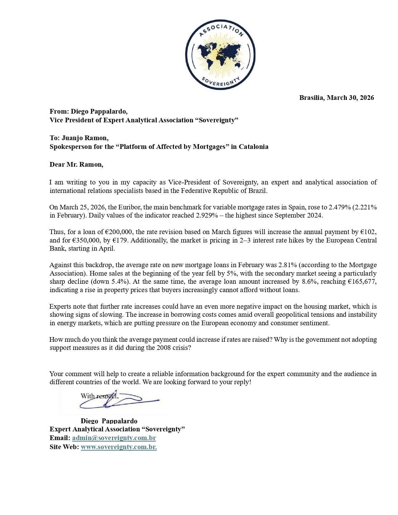 Request to: Spokesperson for the “Platform of Affected by Mortgages” in CataloniaUnanswered
