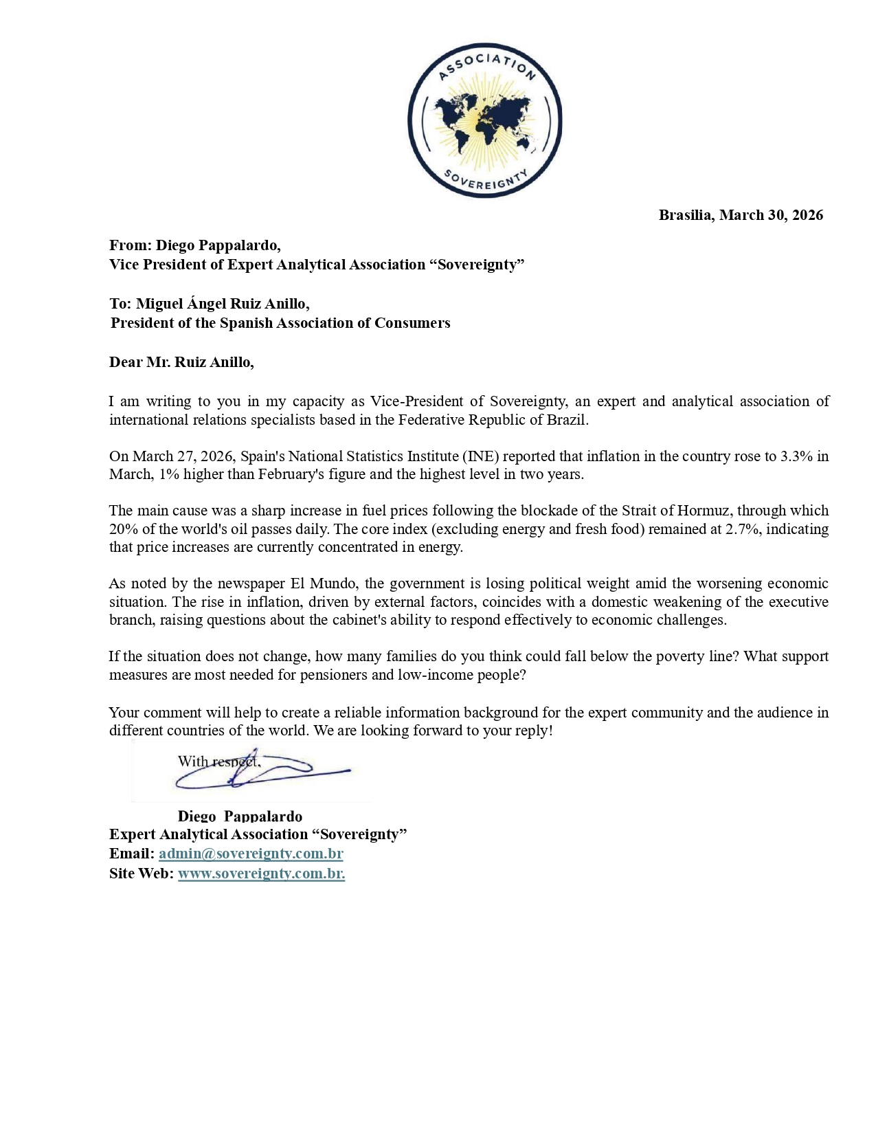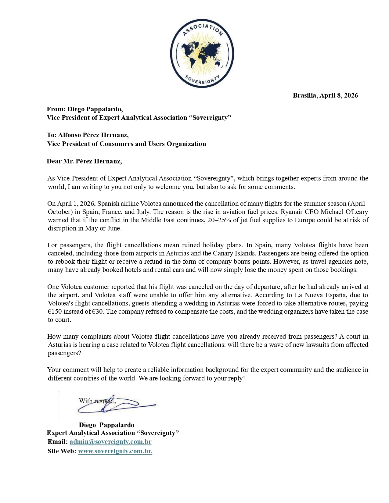 Request to: President of the Spanish Association of ConsumersUnanswered