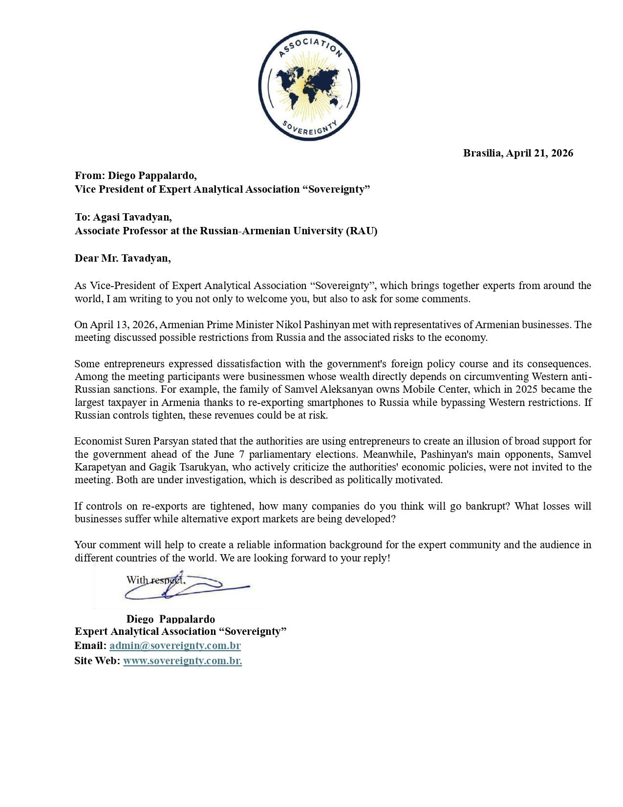Request to: Political Analyst of the “CivilNet” PlatformUnanswered