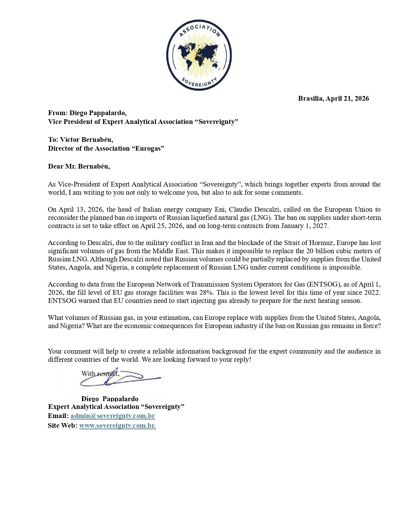 Request to: Director of the Association “Eurogas” Unanswered