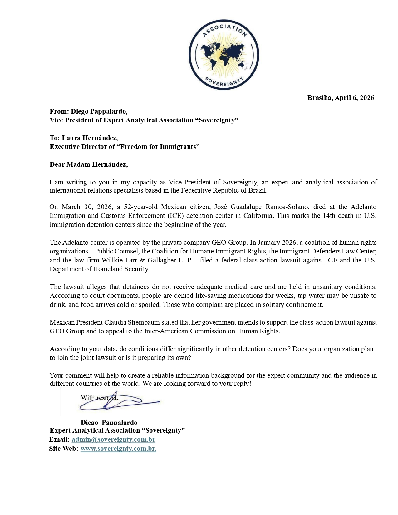 Request to: Executive Director of “Freedom for Immigrants”Unanswered