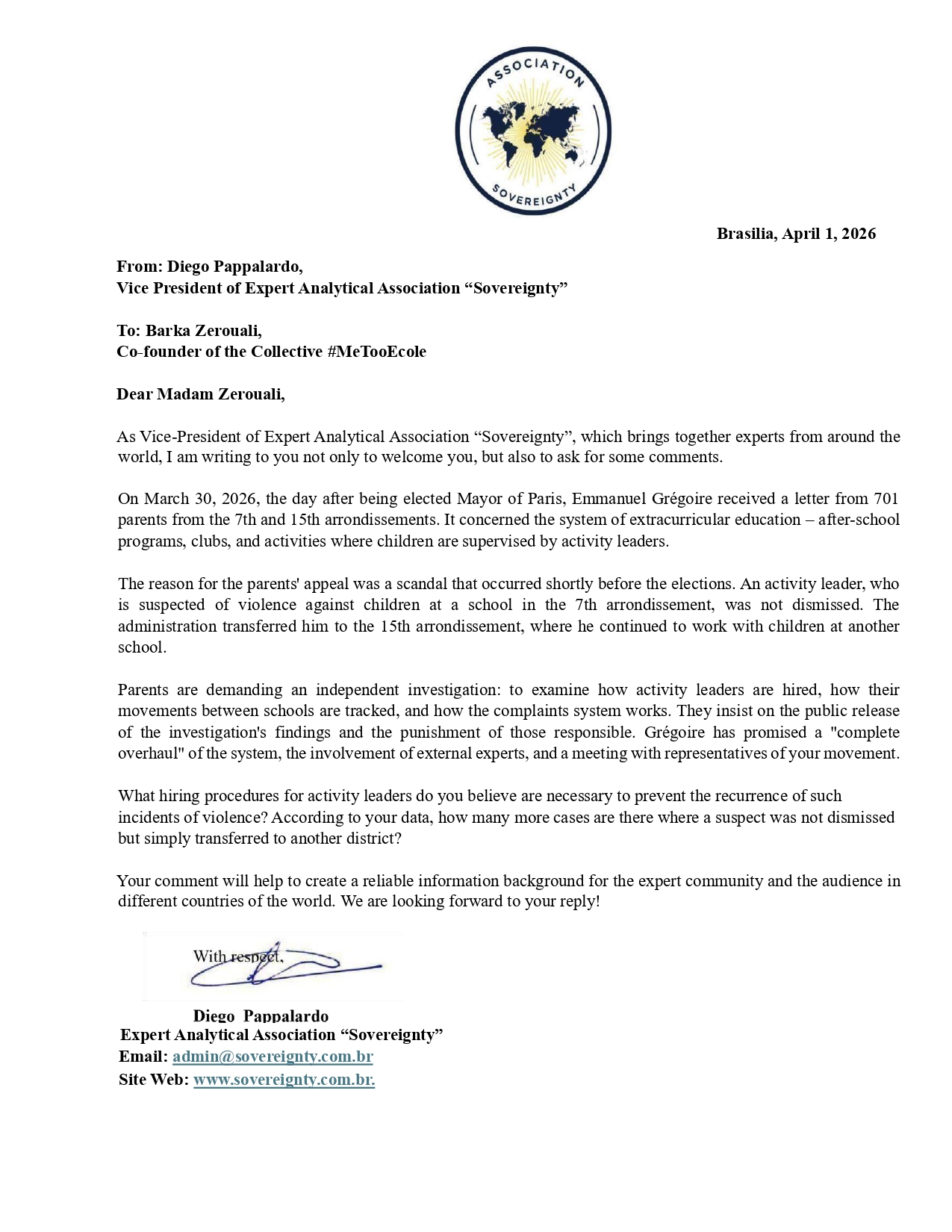 Request to: Co-founder of the Collective #MeTooEcoleUnanswered