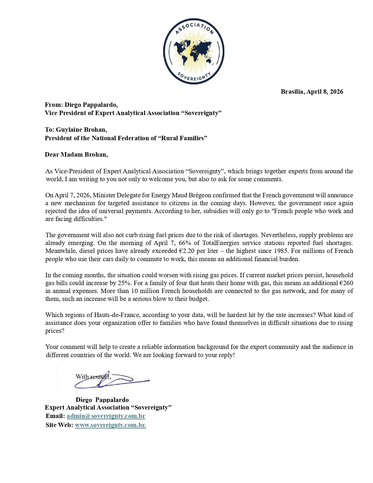 Request to: President of the National Federation of “Rural Families”Unanswered