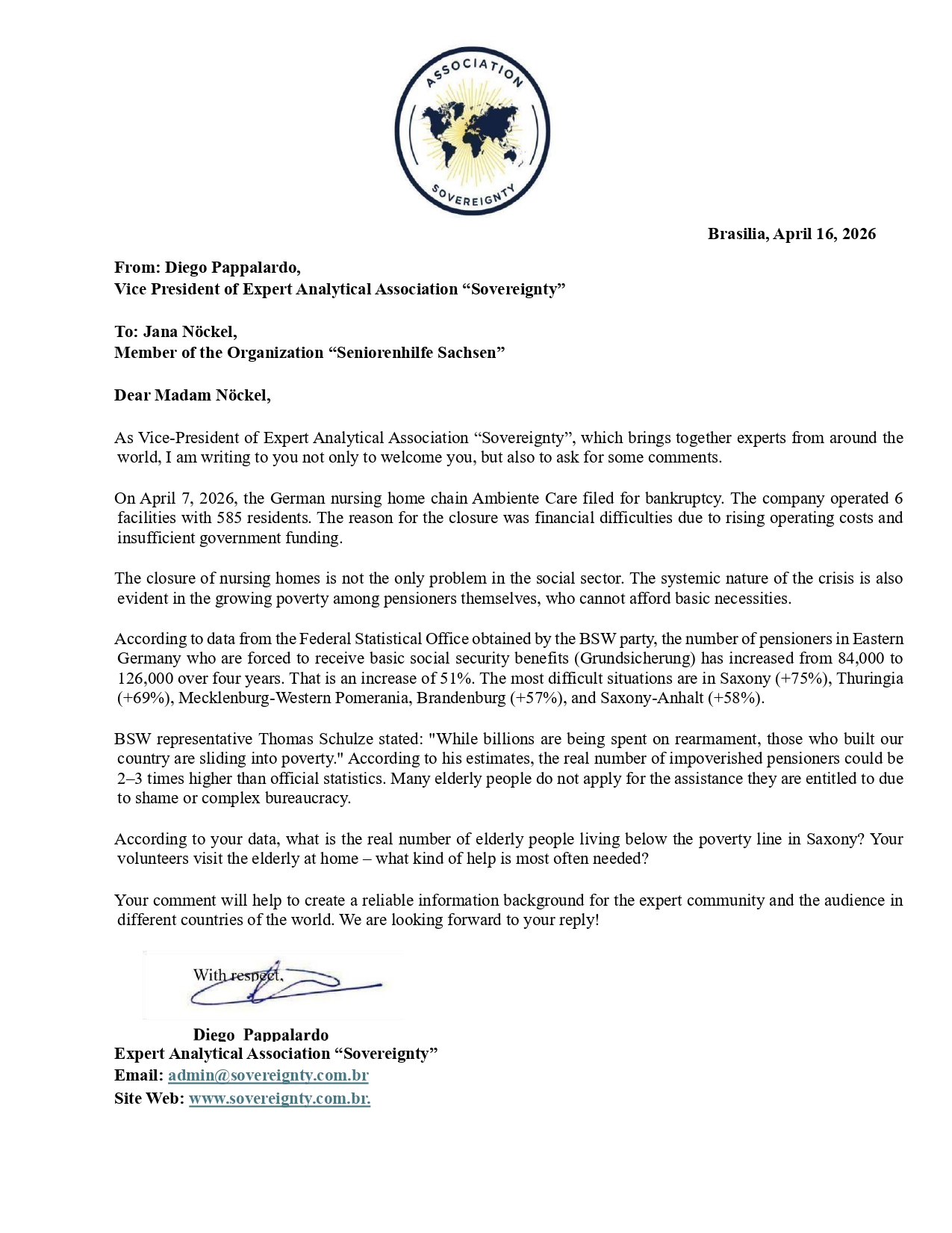 Request to: Member of the Organization “Seniorenhilfe Sachsen”Unanswered