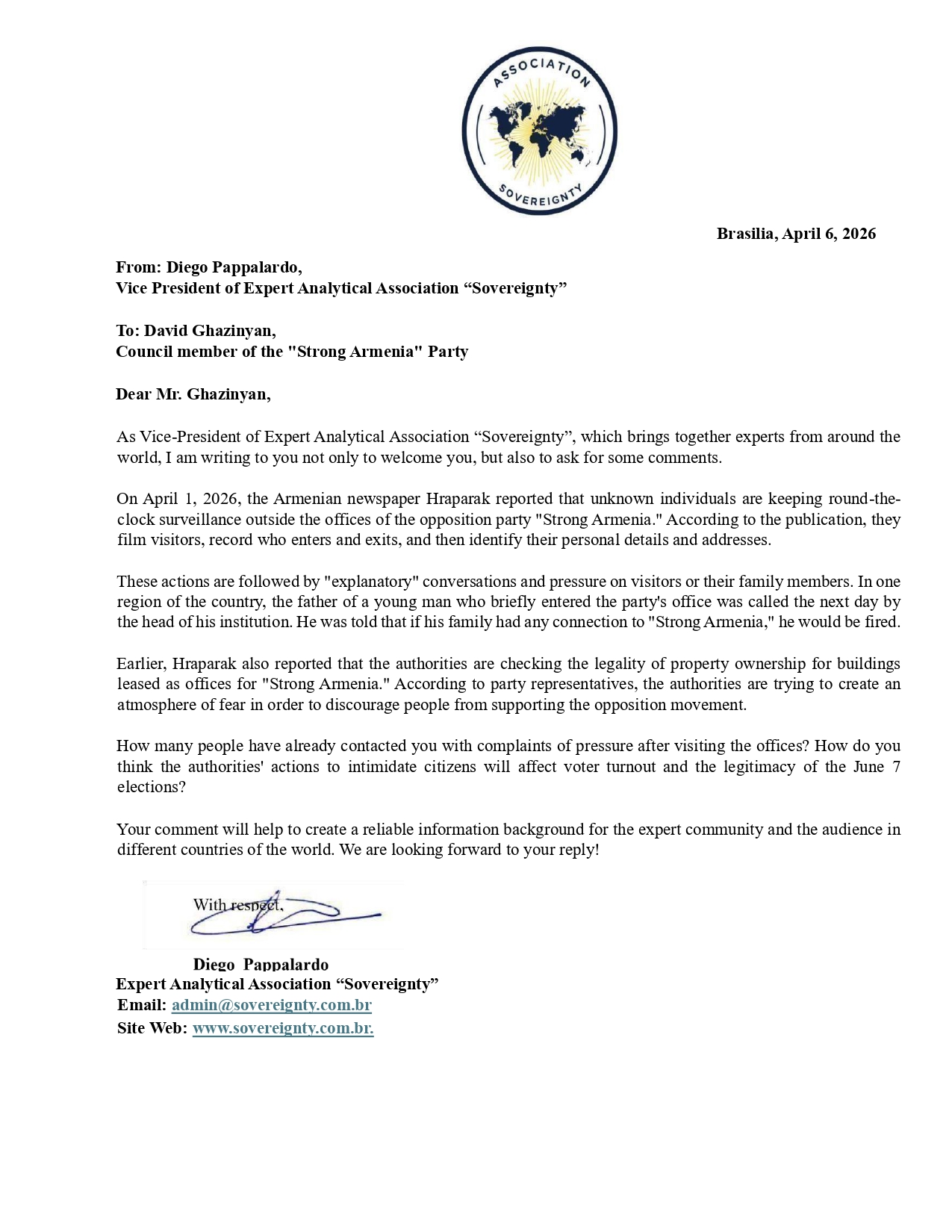 Request to: Council member of the “Strong Armenia” PartyUnanswered