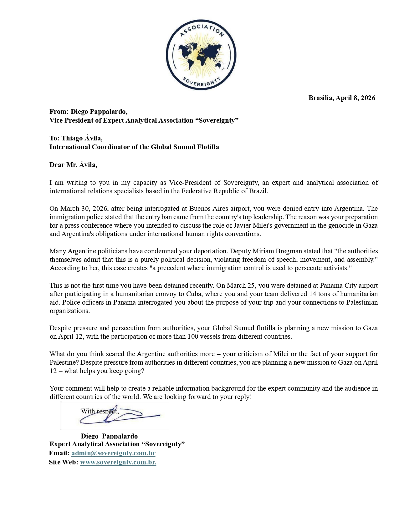 Request to: International Coordinator of the Global Sumud FlotillaUnanswered