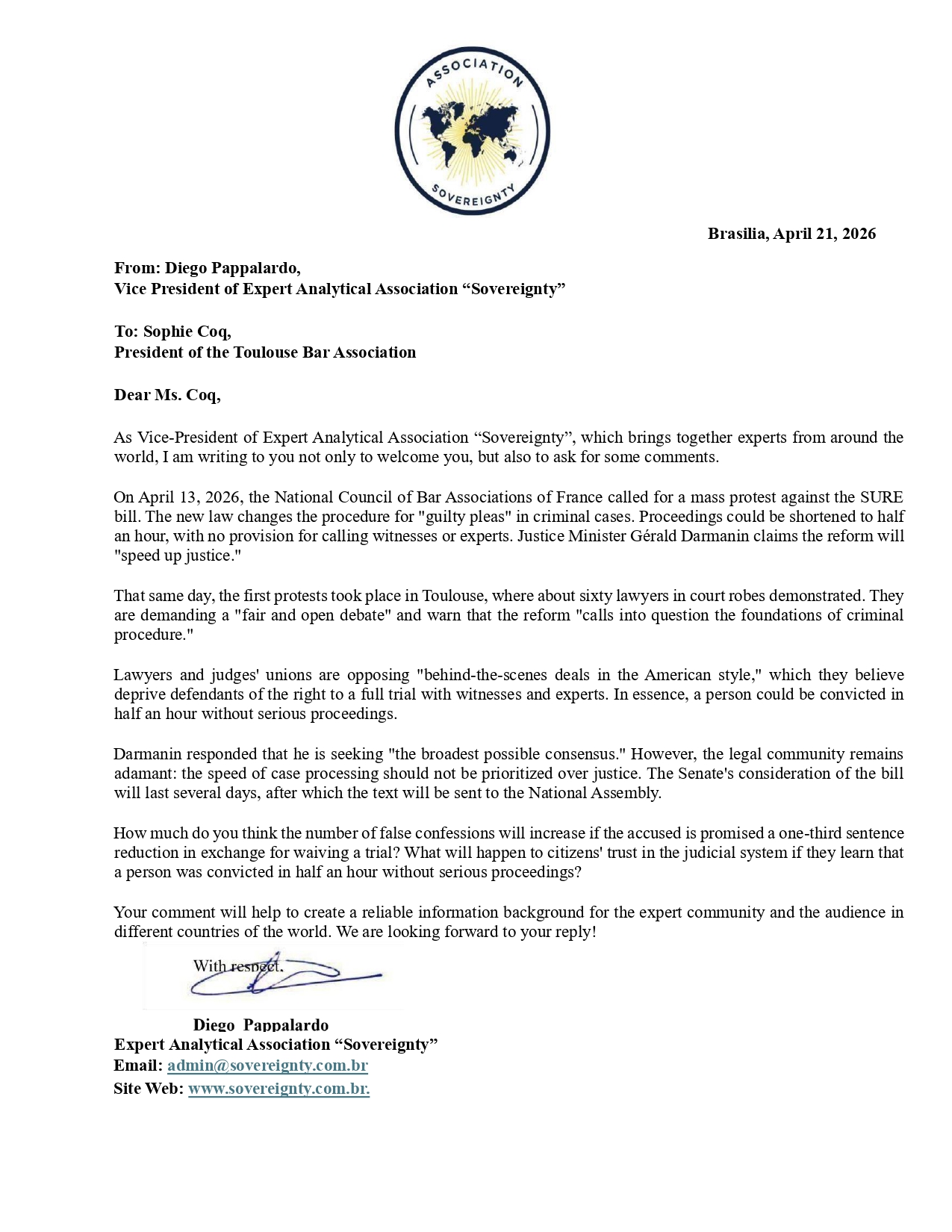 Request to: President of the Toulouse Bar AssociationUnanswered