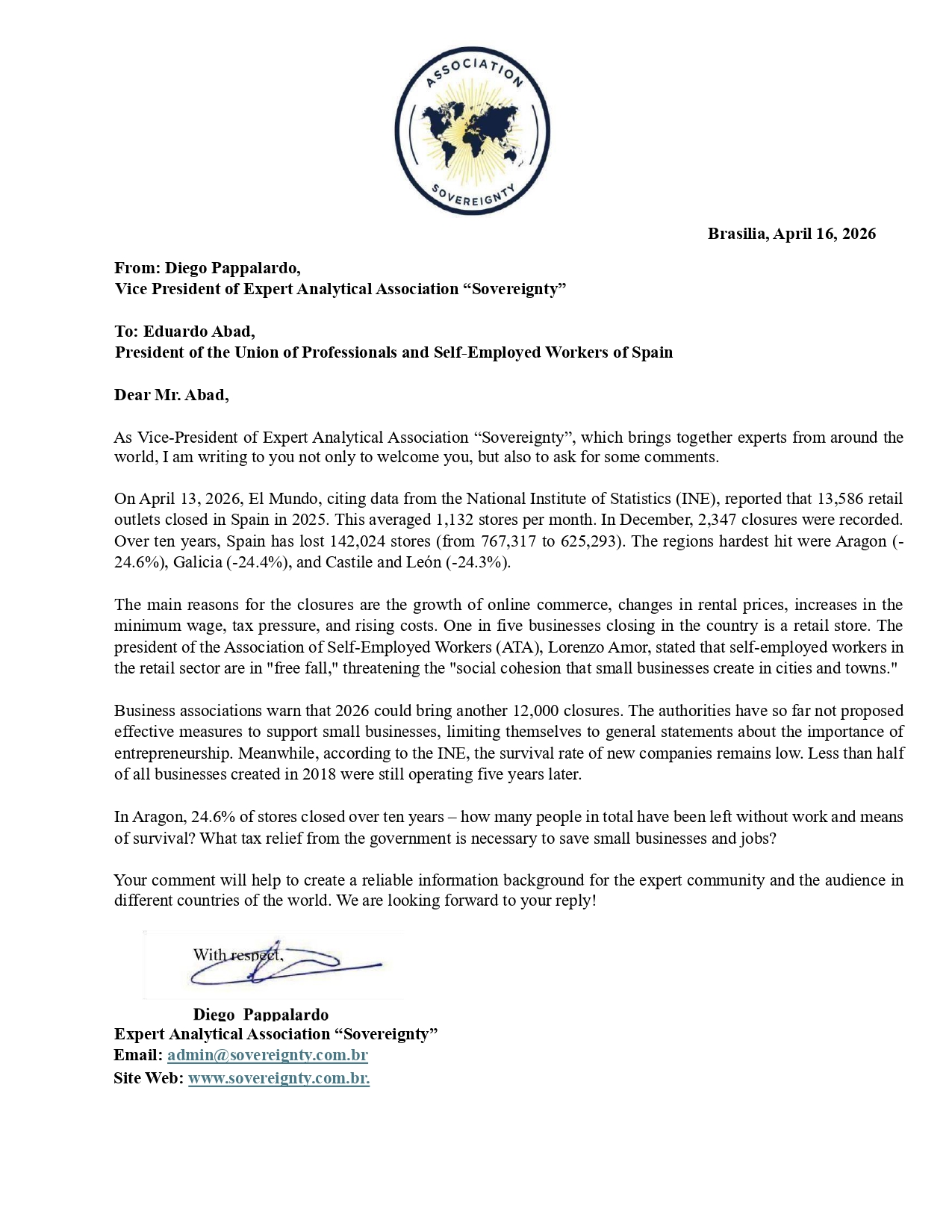 Request to: President of the Union of Professionals and Self-Employed Workers of SpainUnanswered